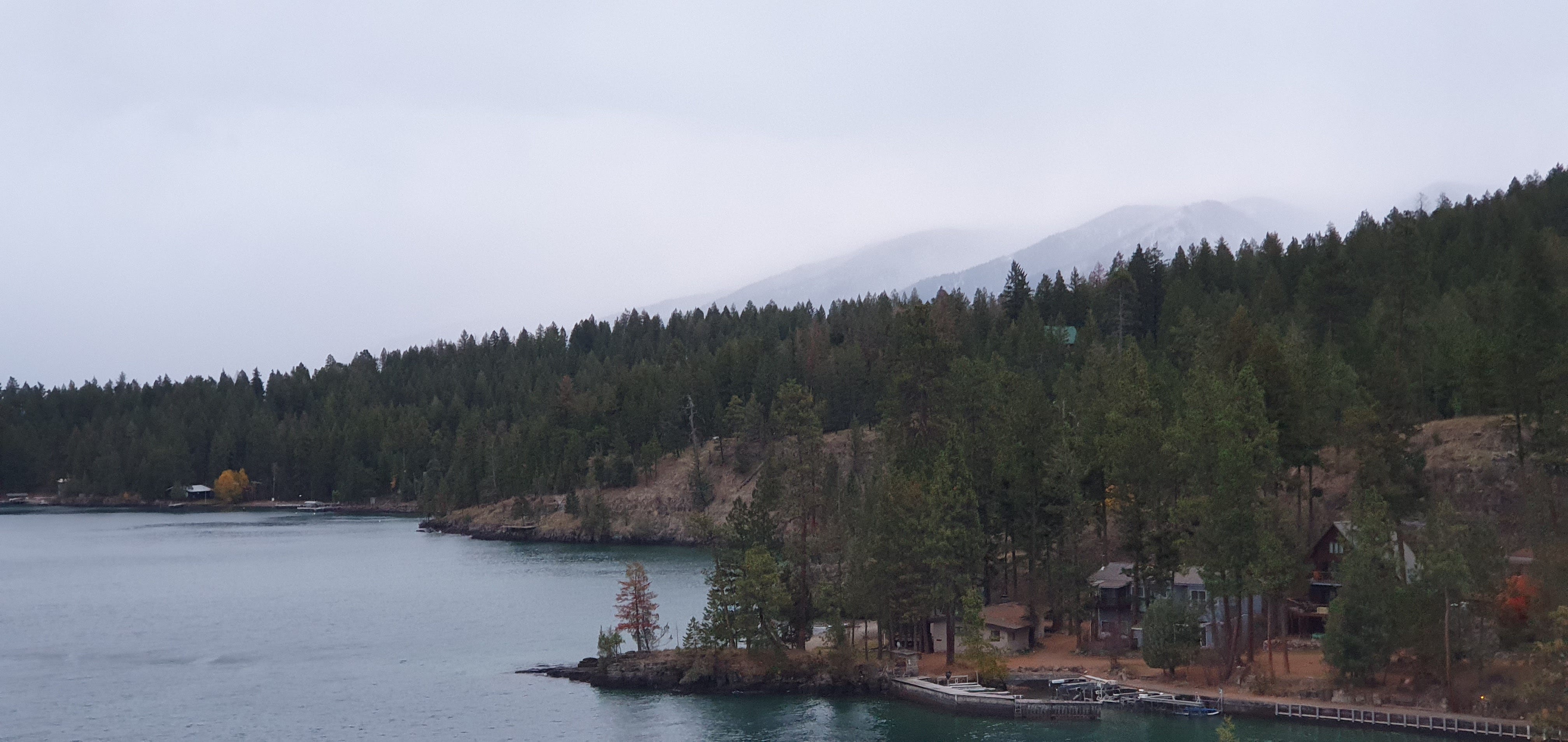 View from “my” living room this morning: snow seems to be on the mountain tops. I’m on Finley Point near Polson, Montana, looking out at Flathead Lake, the largest freshwater lake west of the Mississippi. Finley Point is on the reservation of the Confederated Salish and Kootenai Tribes. They control the dam on the southern end of Flathead Lake which is on the reservation, unlike the northern half of the lake.